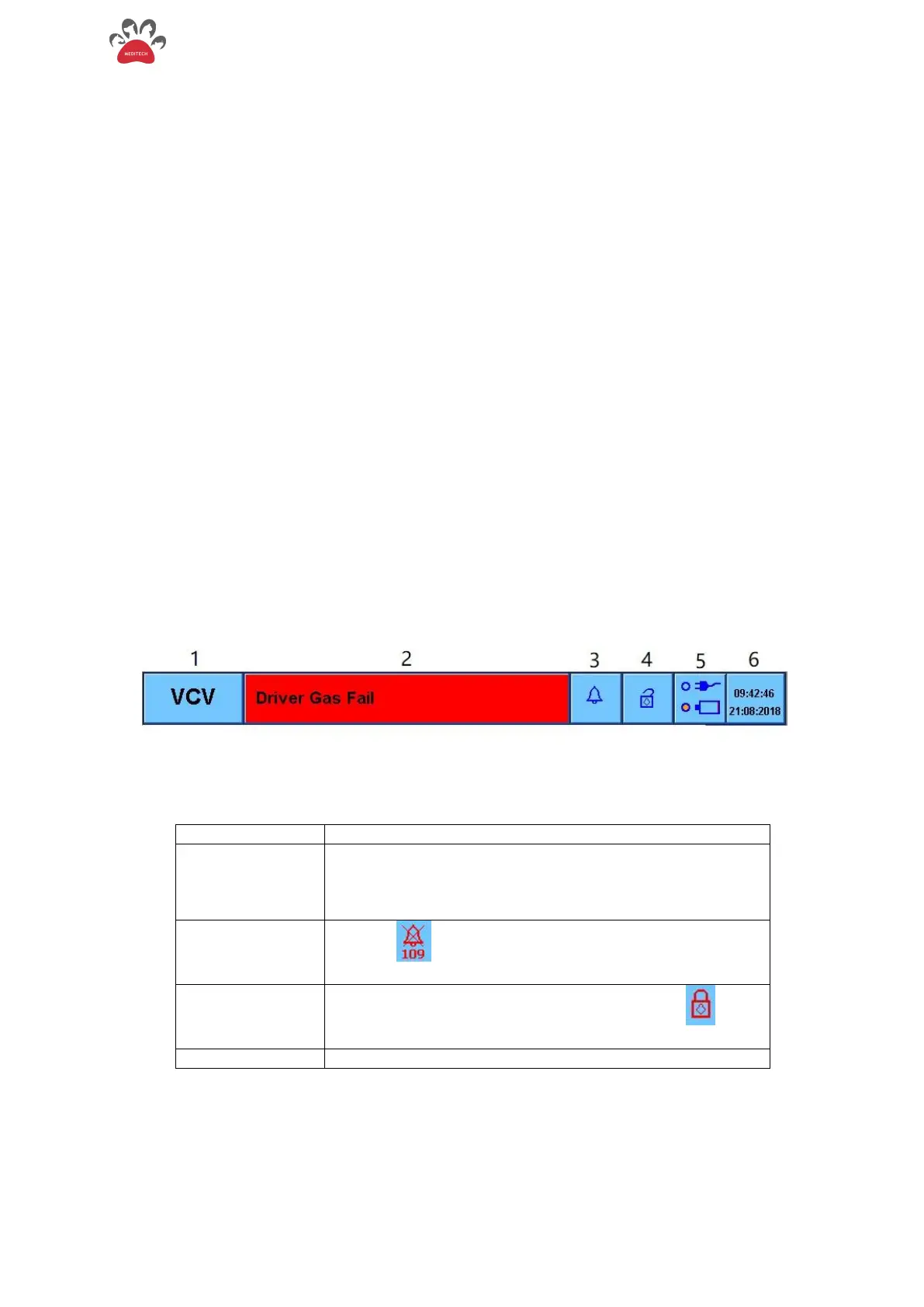 The top side is the information prompt area, which displays the current breathing mode, alarm