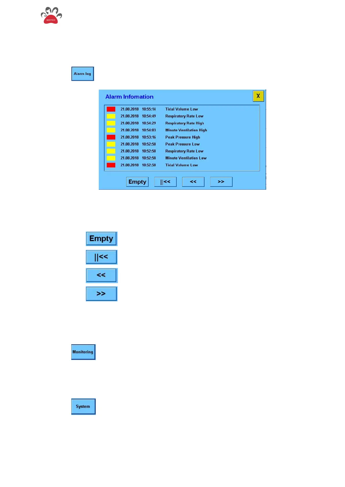 The red and yellow color at the front of the alarm record indicates the level of the alarm; the time