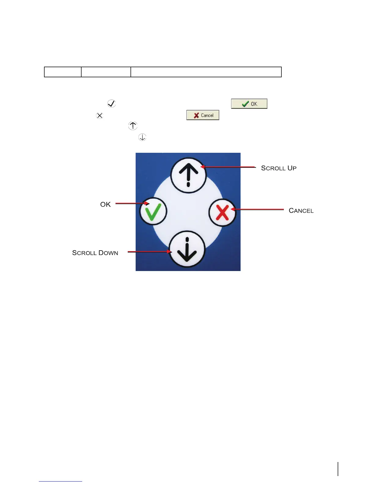 button allows you to scroll up through a list on the monitor.