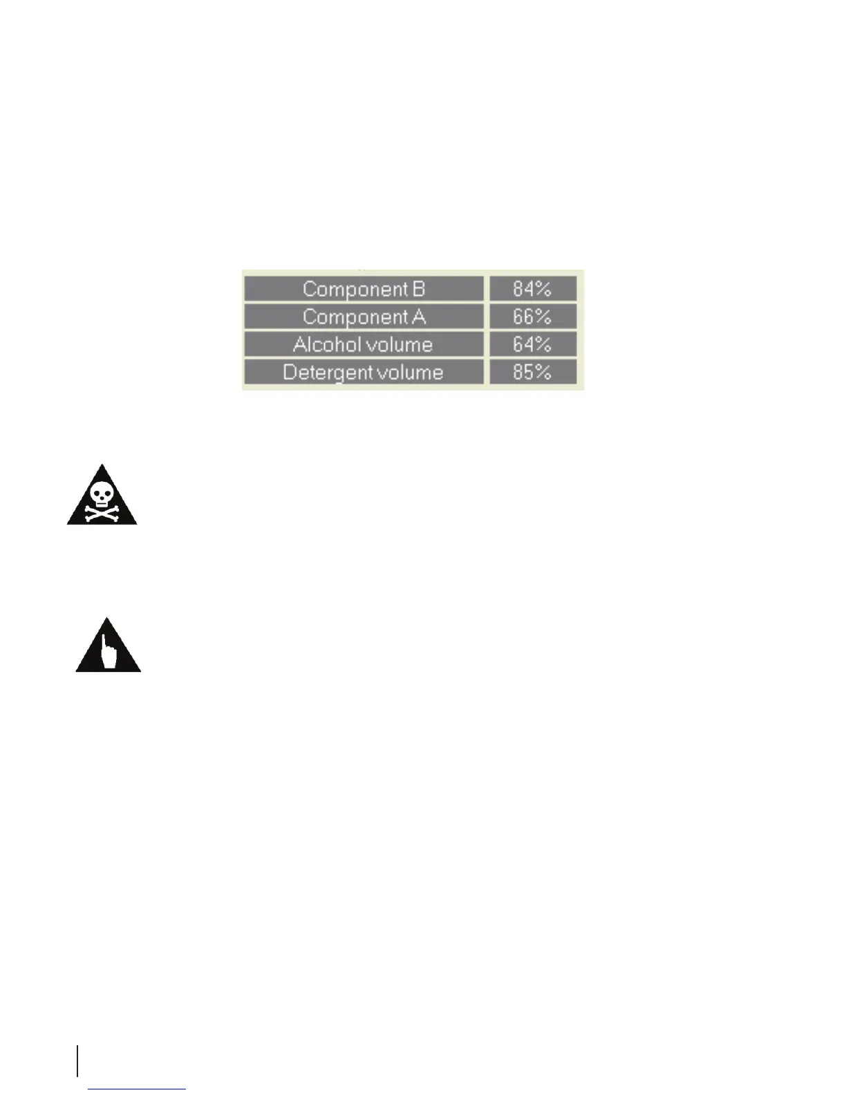 The system monitors the use of disinfectant, alcohol, and detergent. The percentage of uid remaining