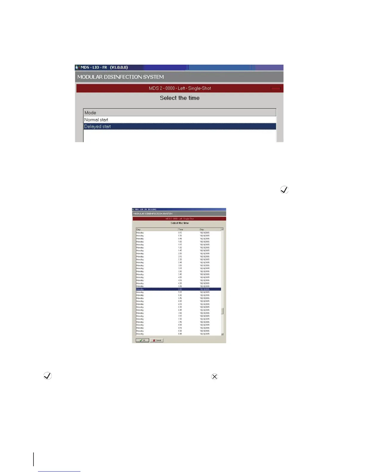 11. If a delayed start is selected, a screen opens called Select the Time. It lists start times in 15 minute