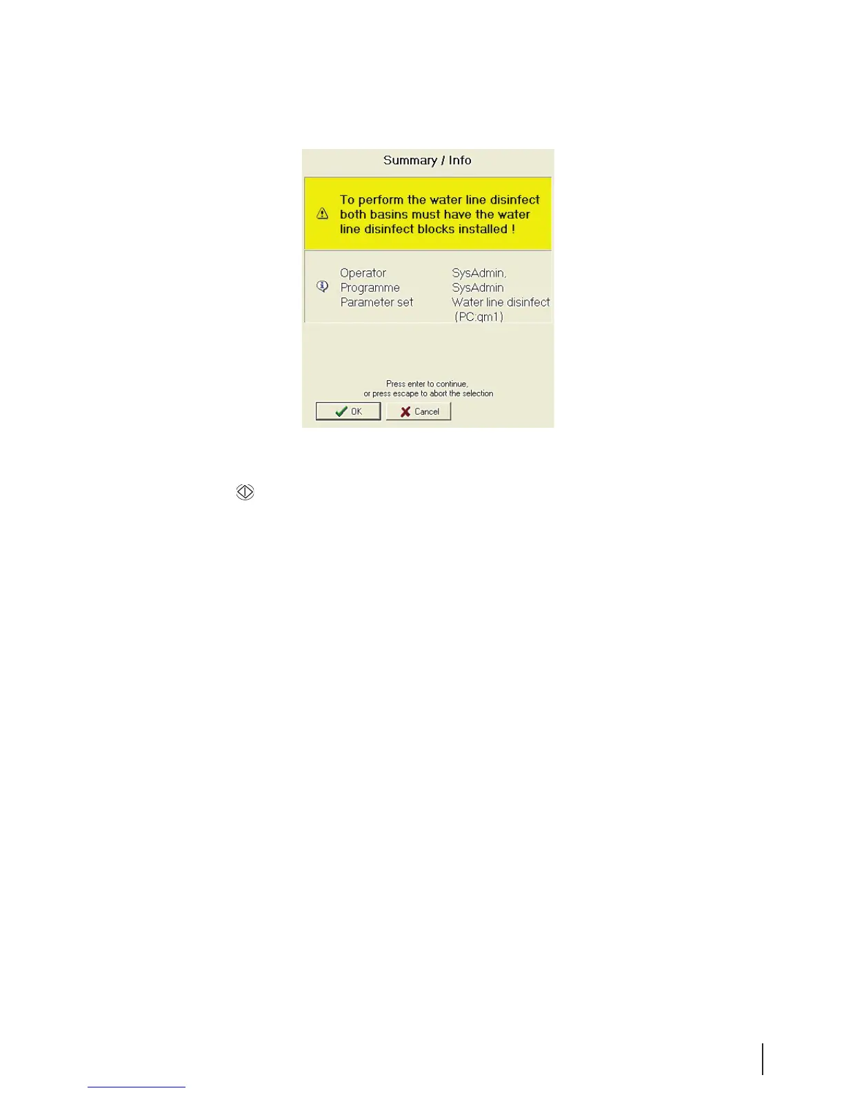 button to initiate the water line disinfection. Disinfectant is ushed through the