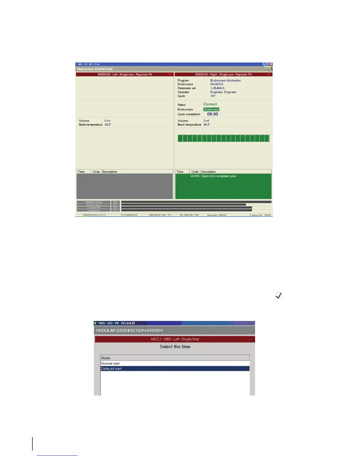 When selecting an delayed start, the endoscope is placed in the basin but the disinfection cycle will not