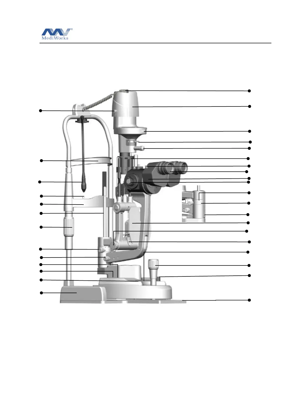MediWorks S360 - 1 Graphical Description of each Part of the Slit Lamp Microscope