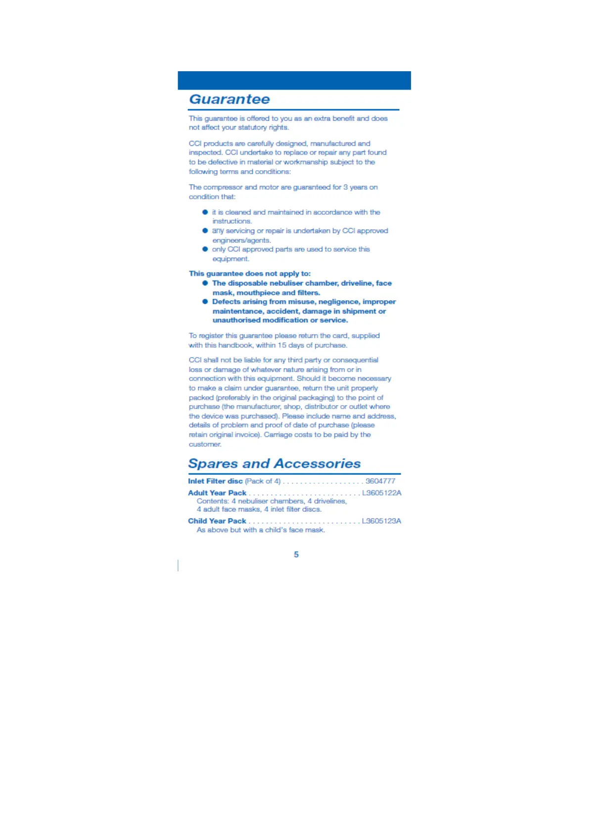 MEDIX Actineb - Guarantee; Spares and Accessories