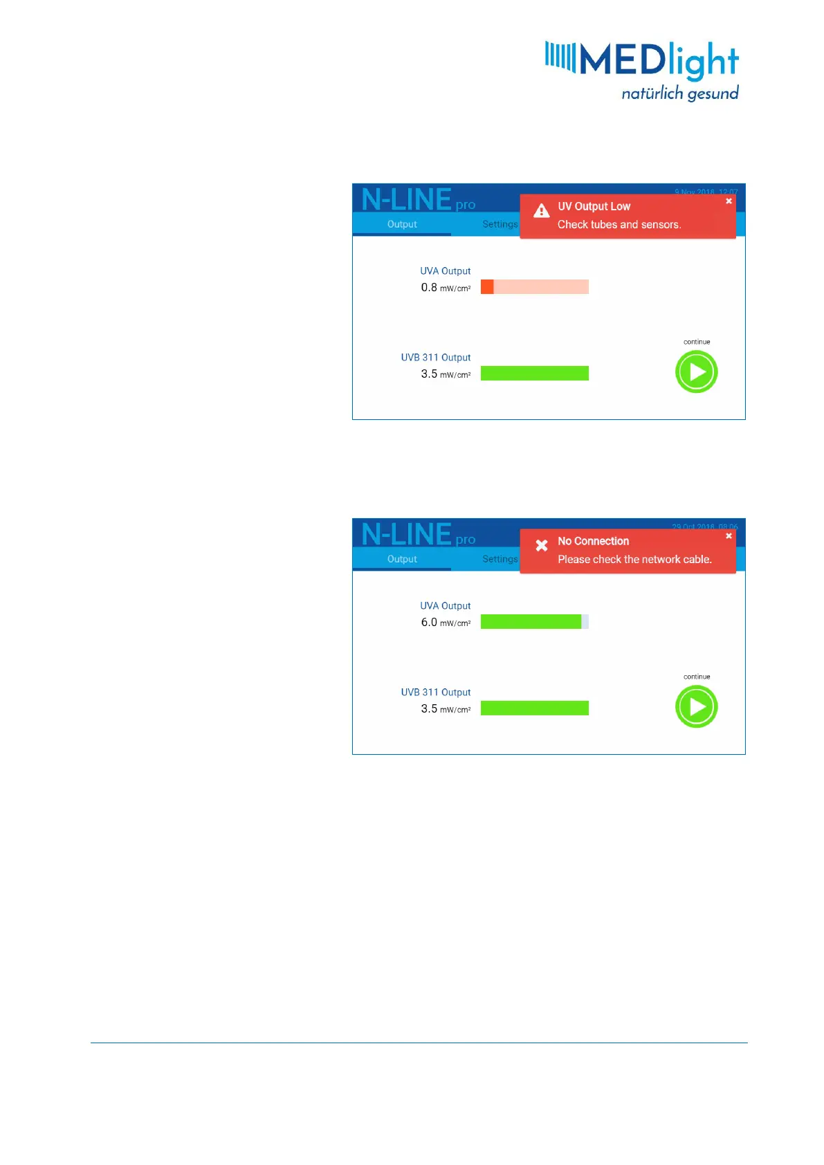 Should the fault still persist after the test treatment, please contact the MEDlight service!