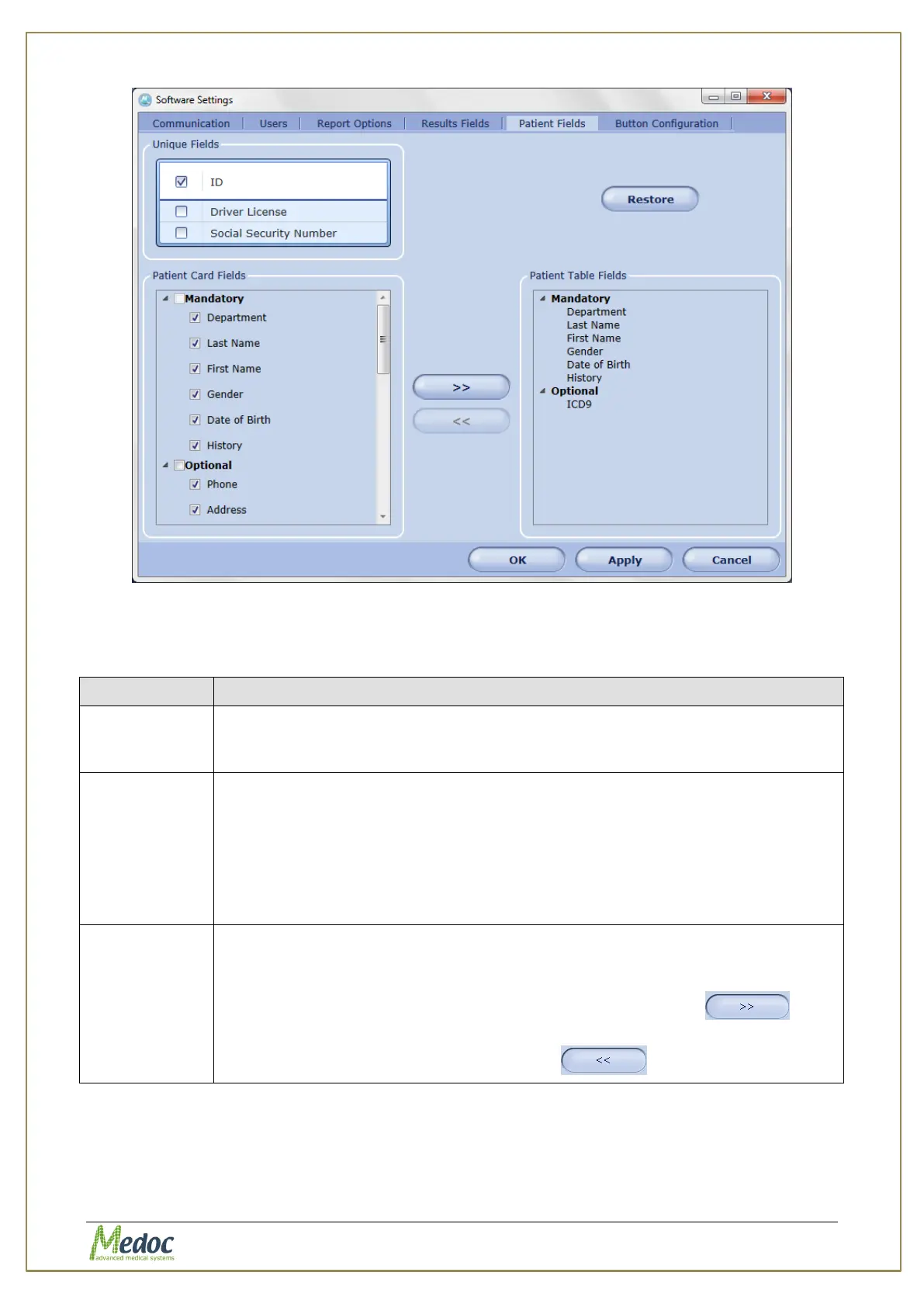 1. Mandatory fields – used for patient identification and cannot be deleted