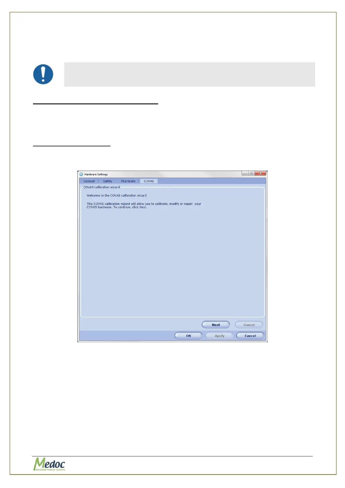 Figure 81: Hardware Settings - CoVas calibration