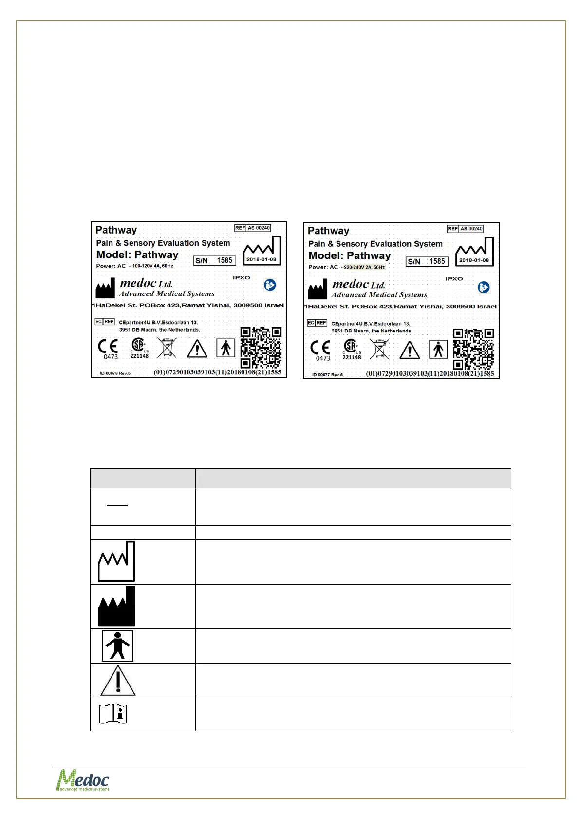 Figure 2: PATHWAY Label 230V