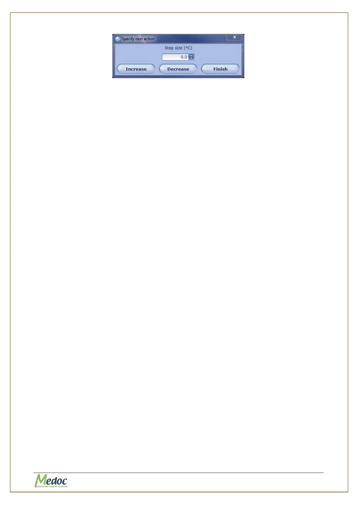 In this window the user selects if to increase or decrease the destination temperature of the