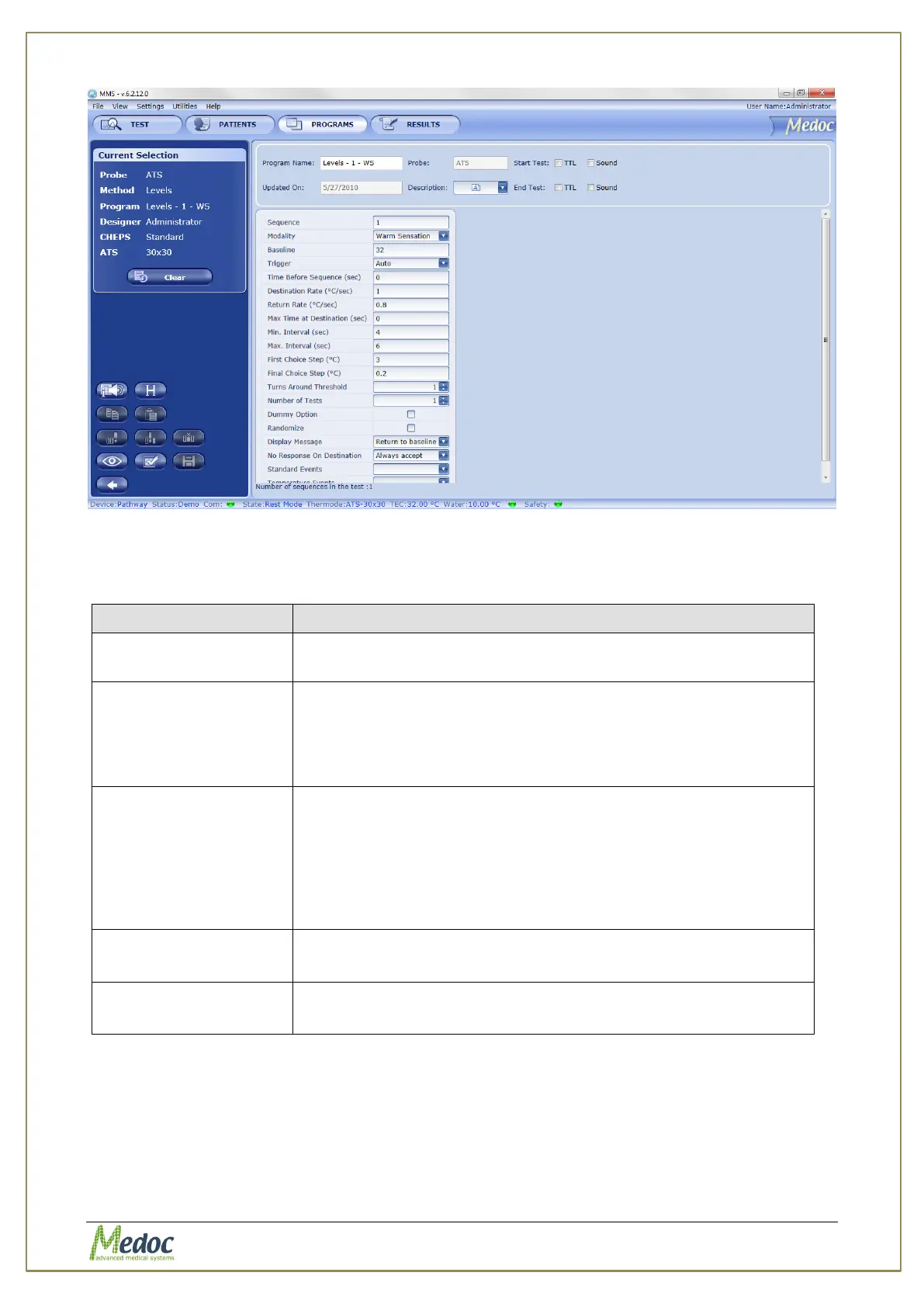 Figure 41: Program Menu – Levels