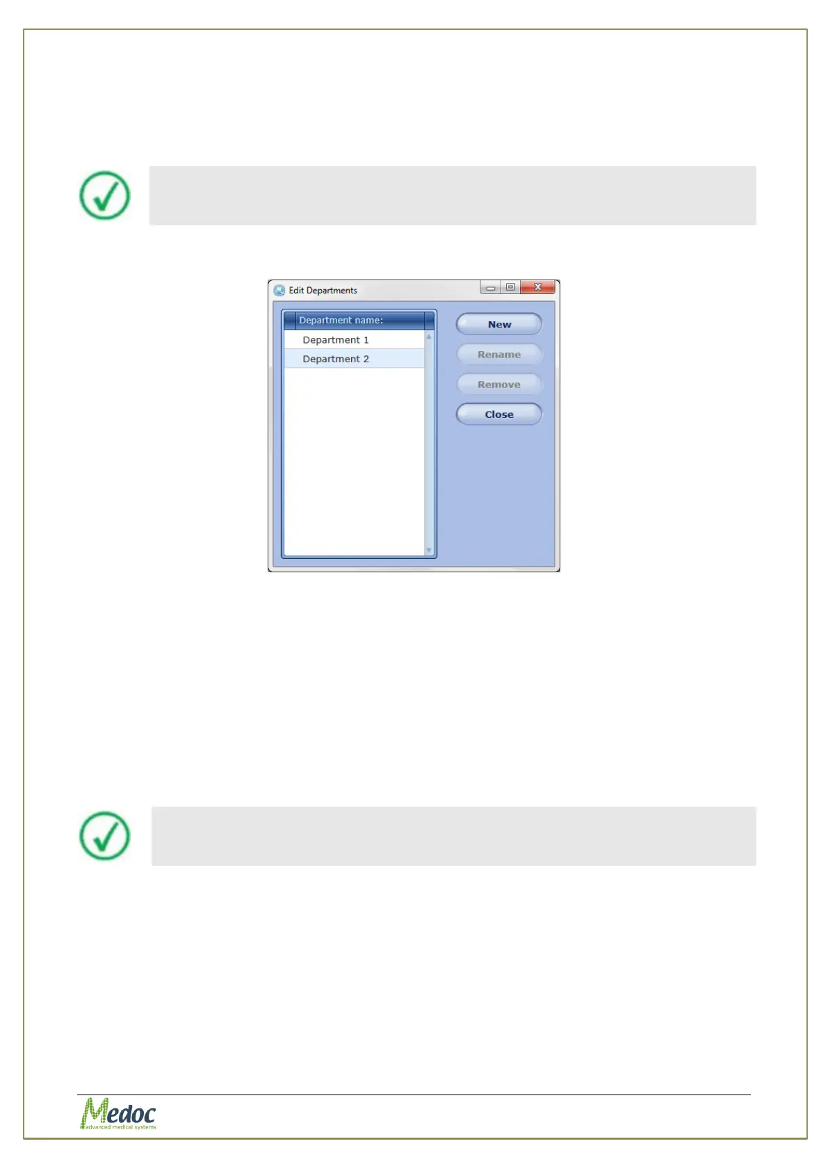 The department list can be managed from the utility menu. It is possible to add, edit or