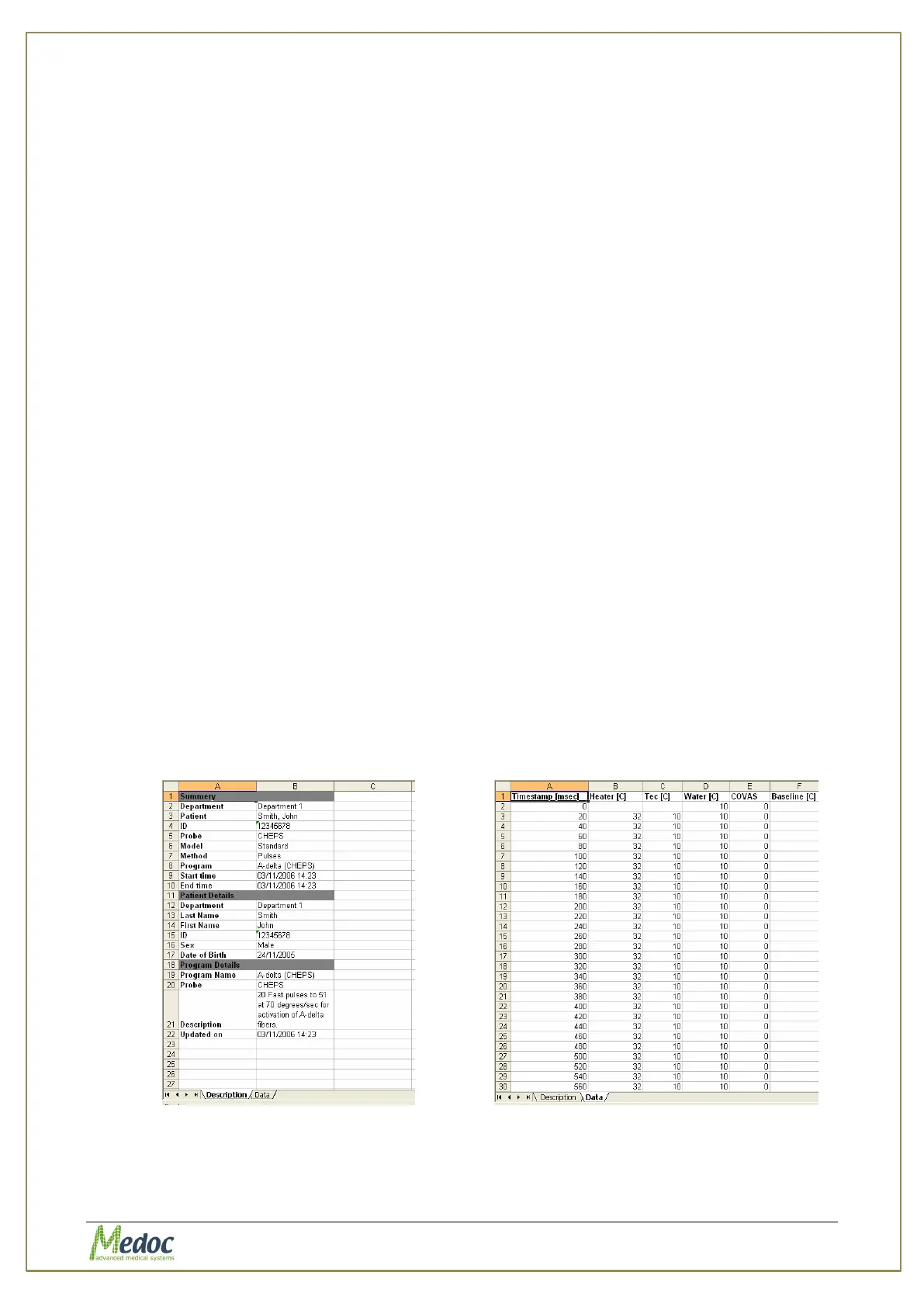 1. Description – Patient and test information.