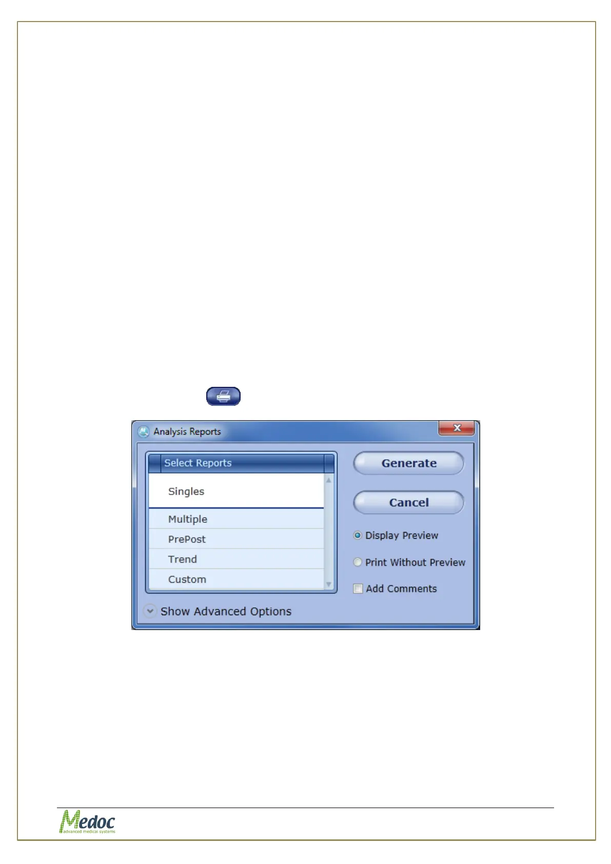 MEDOC Main Station has a powerful Analysis and Report Generator that can be customized as