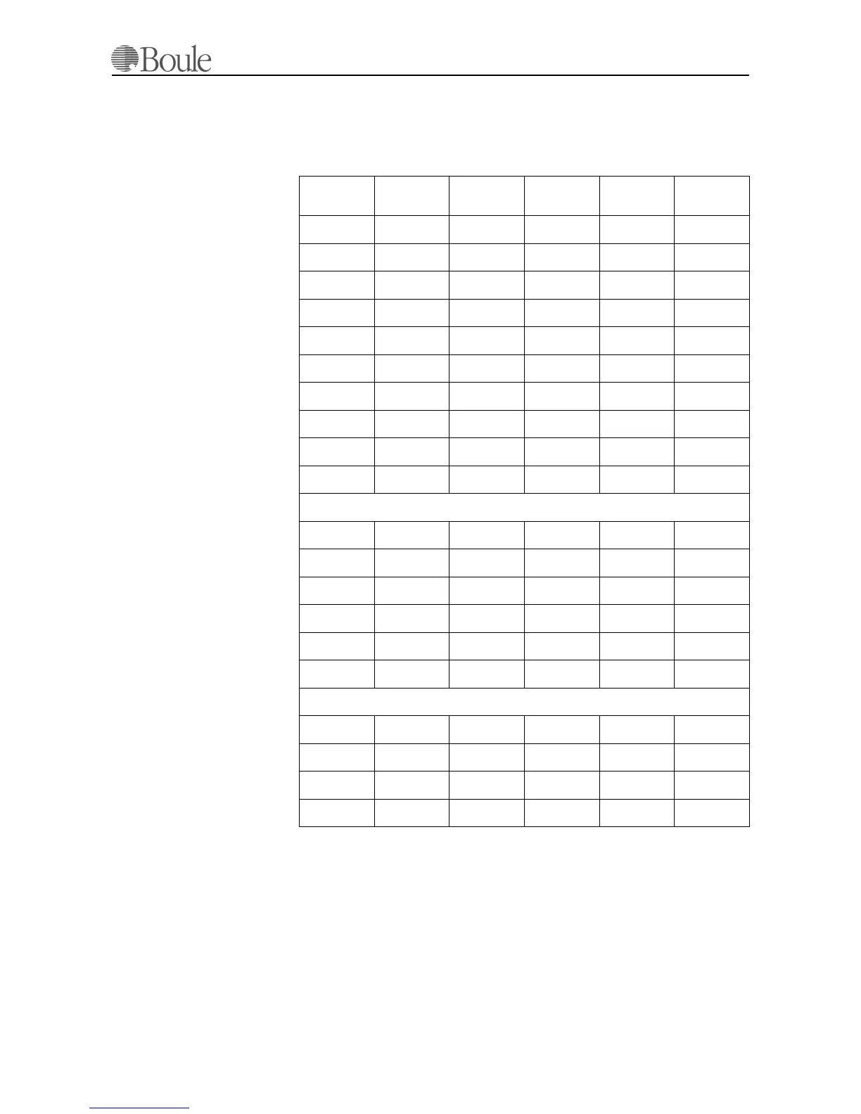 The following table shows which parameters are available on the 9, 16 and 20 pa-
