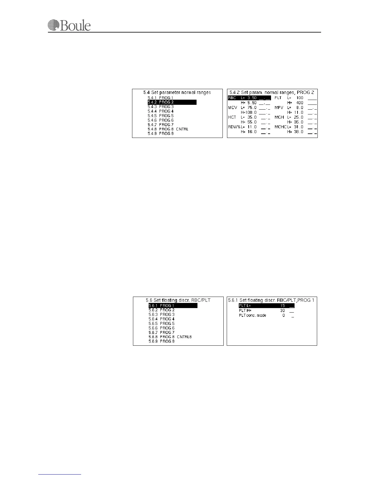 1. Enter PROG 1 to set normal ranges for “Blood mode” as shown above.
