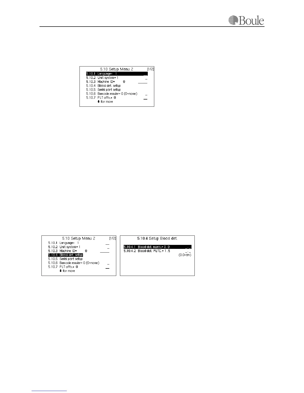 Setting this menu 5.10.4.1 to “0” will enable the blood detector function of the