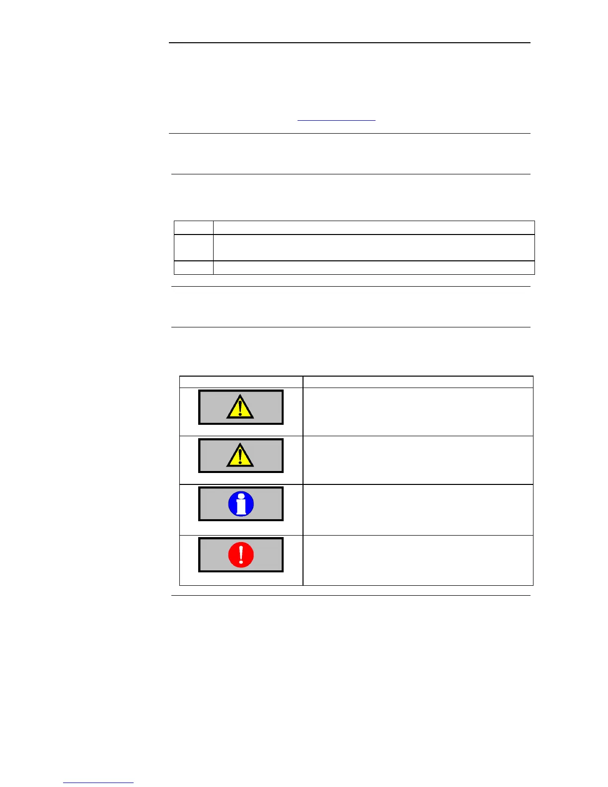 The following warning signs in the manual are used to identify possible