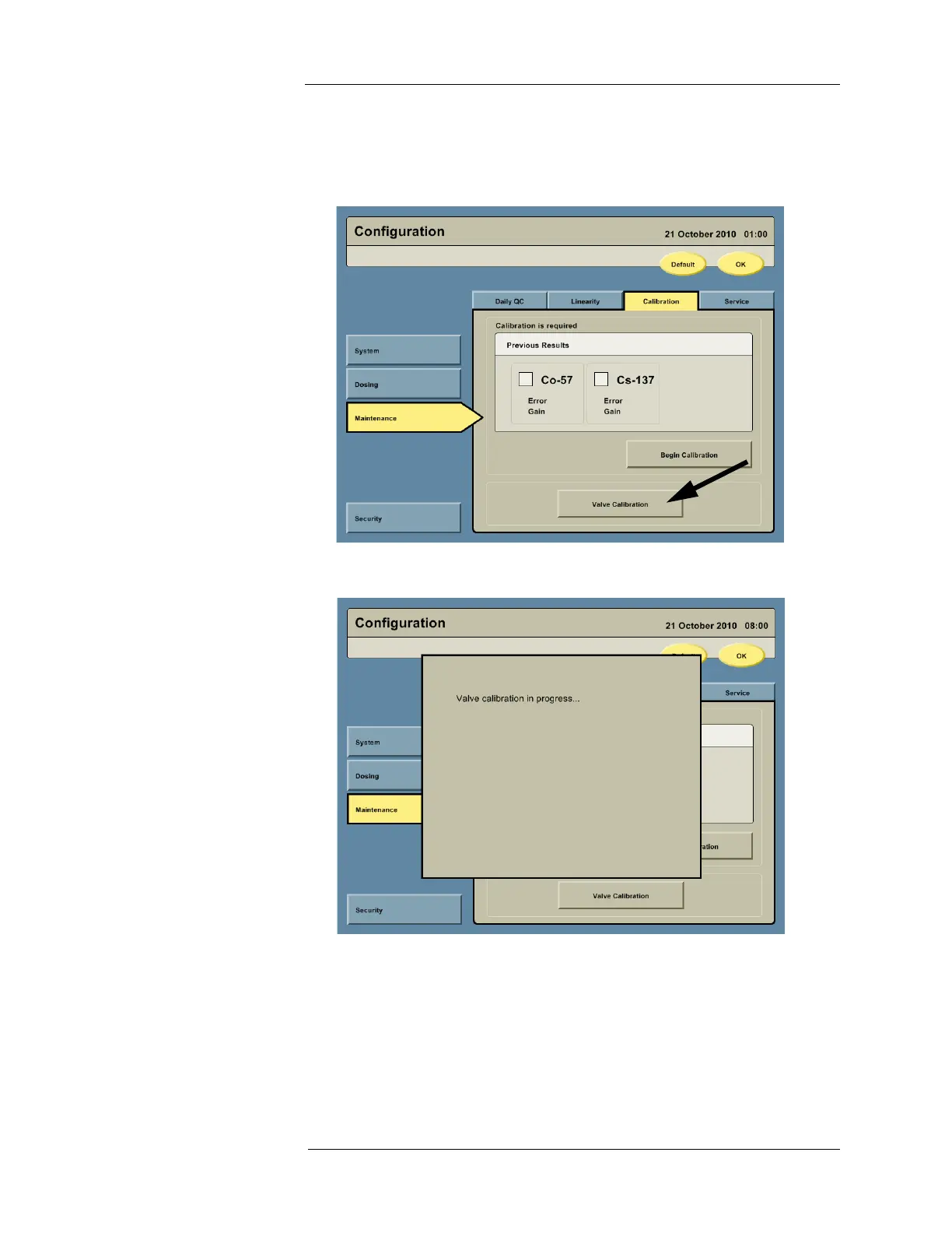 3. Press the VALVE CALIBRATION button.