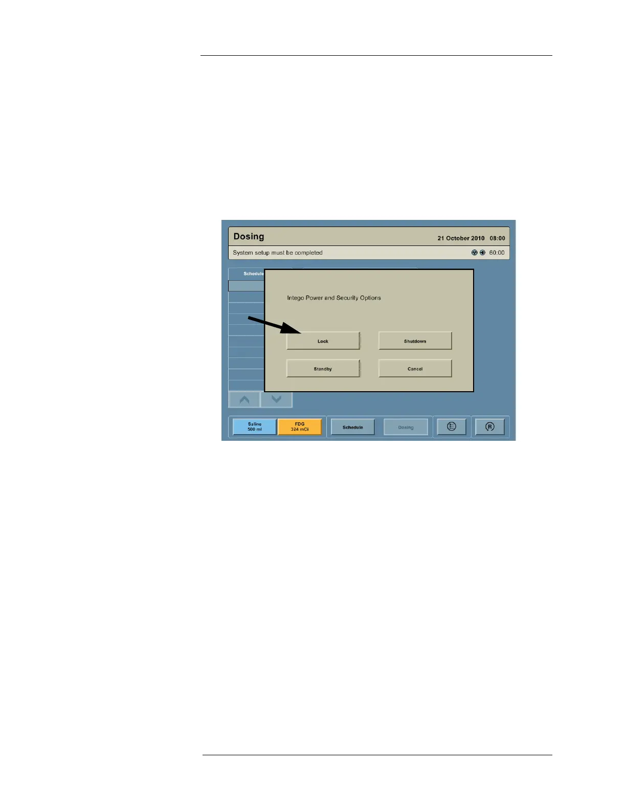 Options.” Press the LOCK button. A dialog box appears on the screen with the message