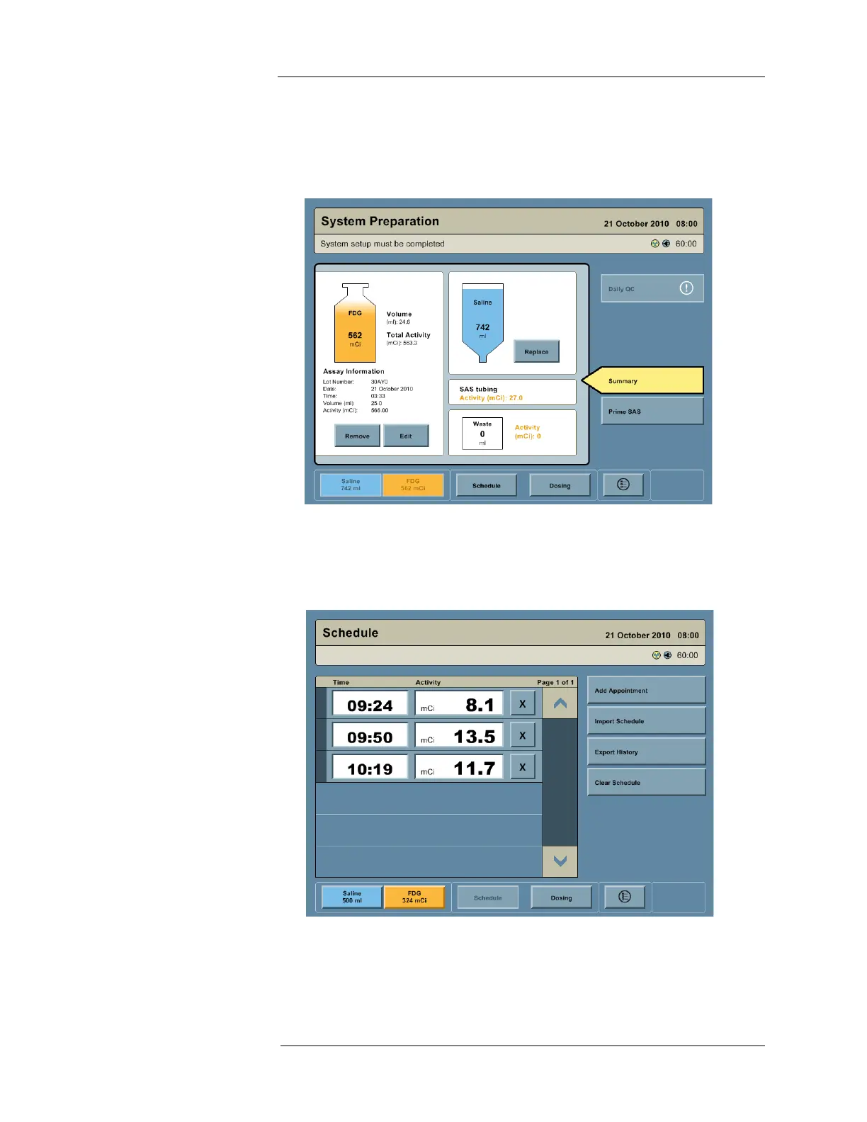 activity contained in the Waste Container are monitored from the System Preparation screen.