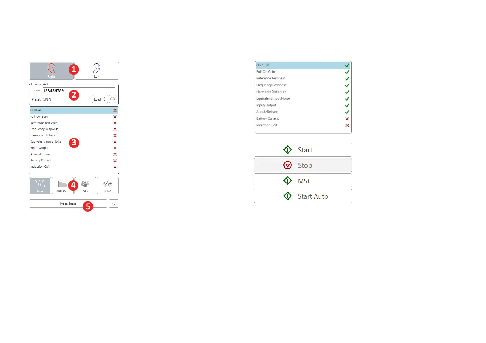 4. Click Start Auto to run the selected tests in sequence.