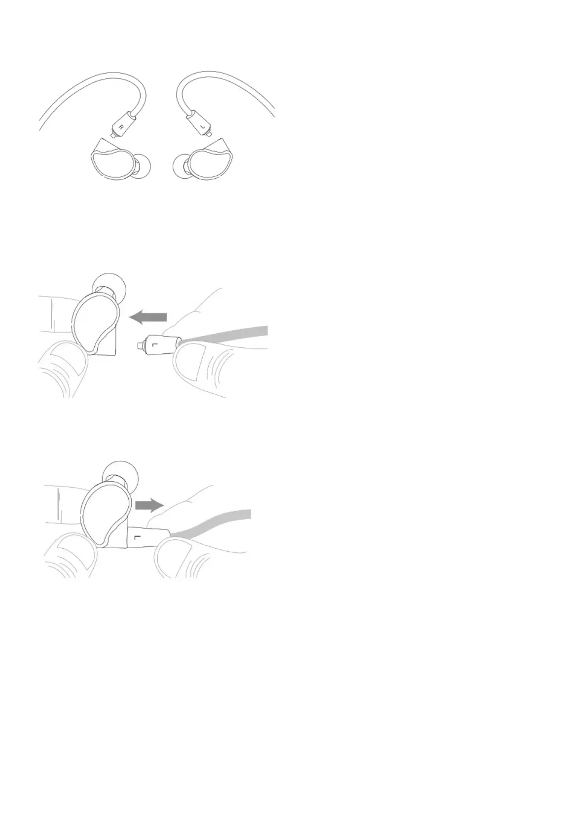 To detach the cable, grasp the earpiece and cable connector firmly, and pull straight apart.
