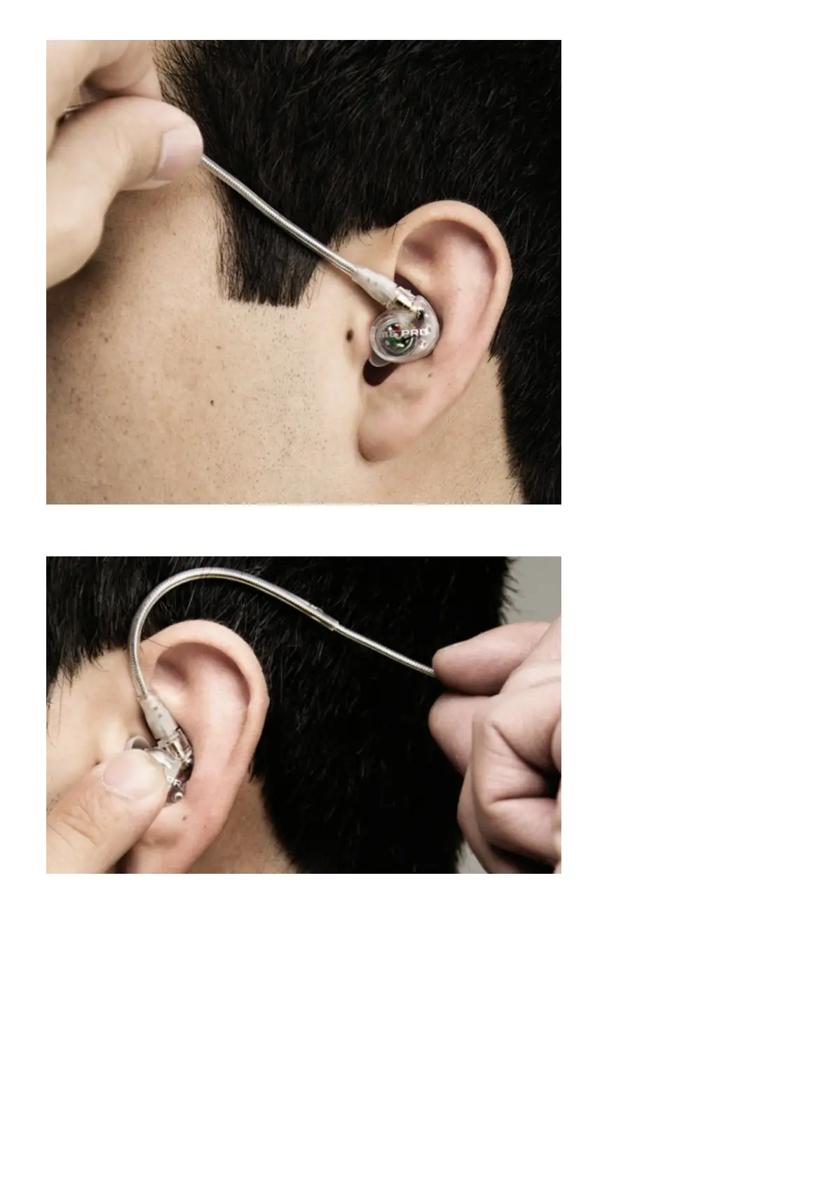 1.2 Straighten the memory wire and put each earpiece in the corresponding ear.