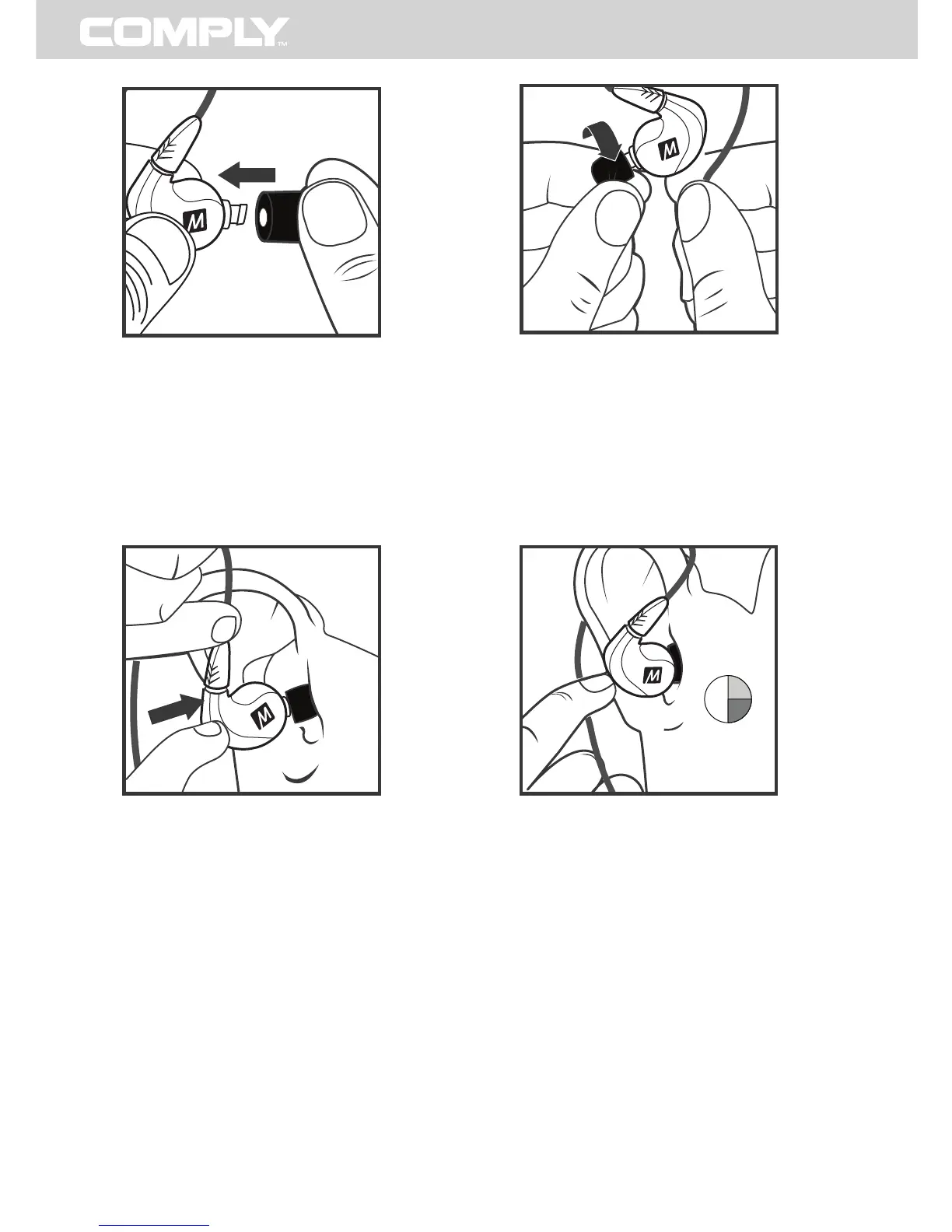 1. REPLACE EARPHONE TIPS WITH COMPLY™ TIPS 2. ROLL TIP INTO THIN, ROUND CYLINDER
