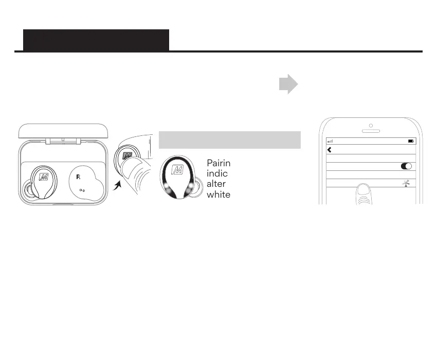 Remove right earpiece from case, press and hold the