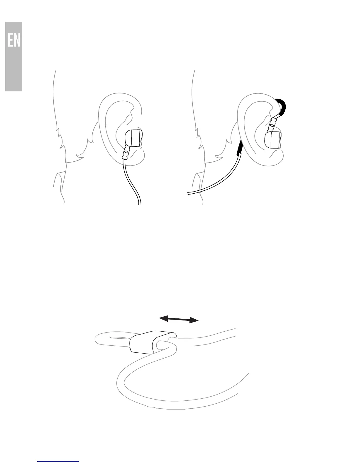 Put the earphones in your ears. Adjust the earpieces for an airtight seal.