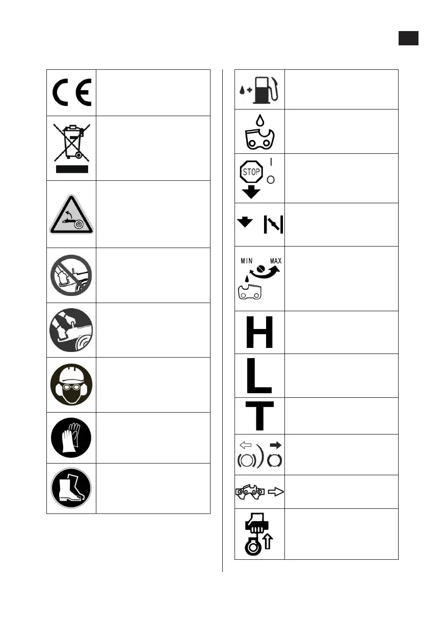 Motorsågen är märkt med präglade symboler