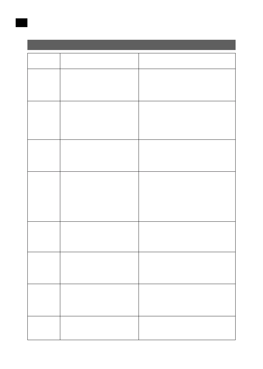 Objawy błędu / możliwa przyczyna Propozycje rozwiązań