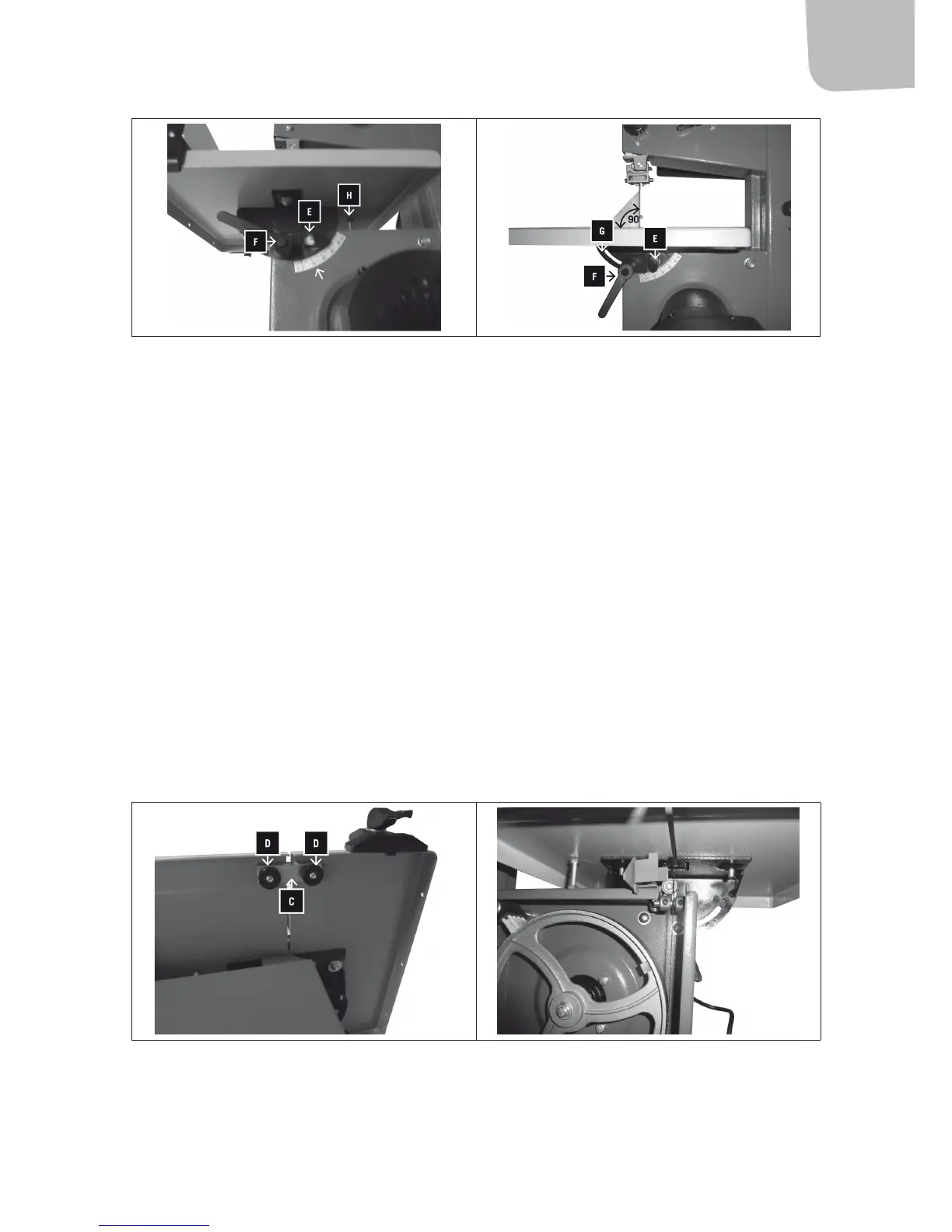 1. Løsne de 2 ngerskruene (D) og ern U-prolen (C) under sagebordet.