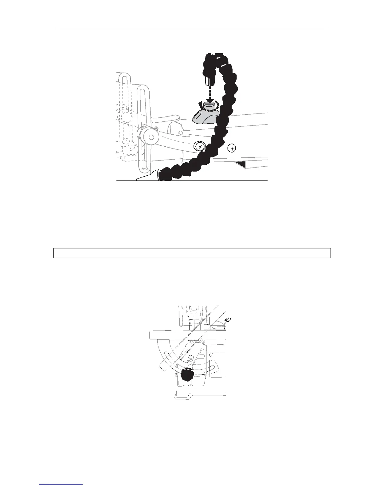 Bordet til figursagen kan helles 45°. Dette skjer på følgende måte: