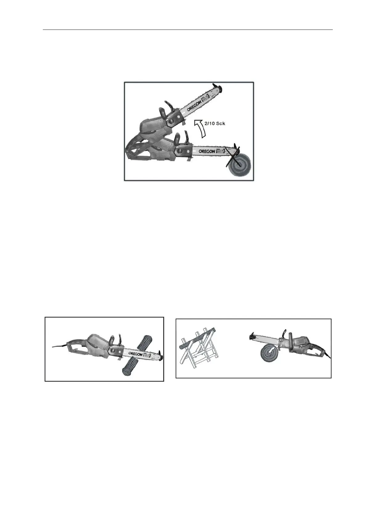 kvistning, om möjligt. Såga inte med svärdets spets. Se upp för hinder som stubbar, rötter, gropar och