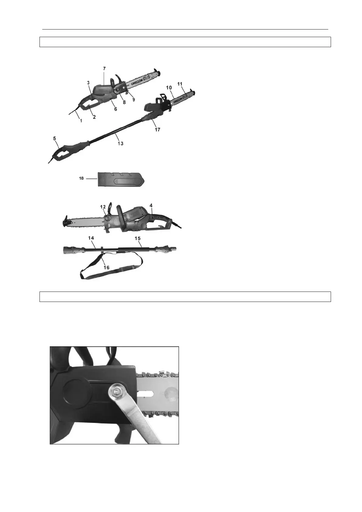 VIKTIG! Ikke sett i støpselet før verktøyet er fullstendig montert og kjedet strammet. Bruk vernehansker.