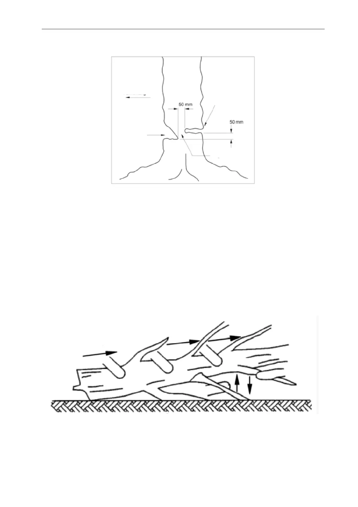 Hold avstand fra bakken. Hopp over grener som støtter mot bakken, til stammen er kappet.