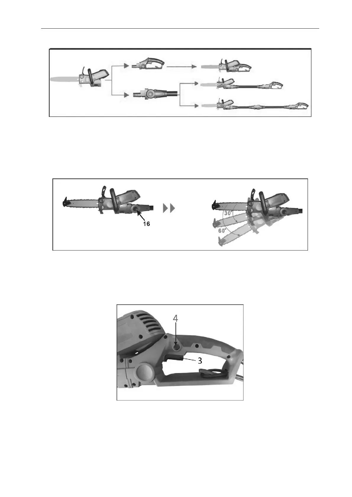 • When the saw head is fitted directly on the grip, the tool is a chain saw.