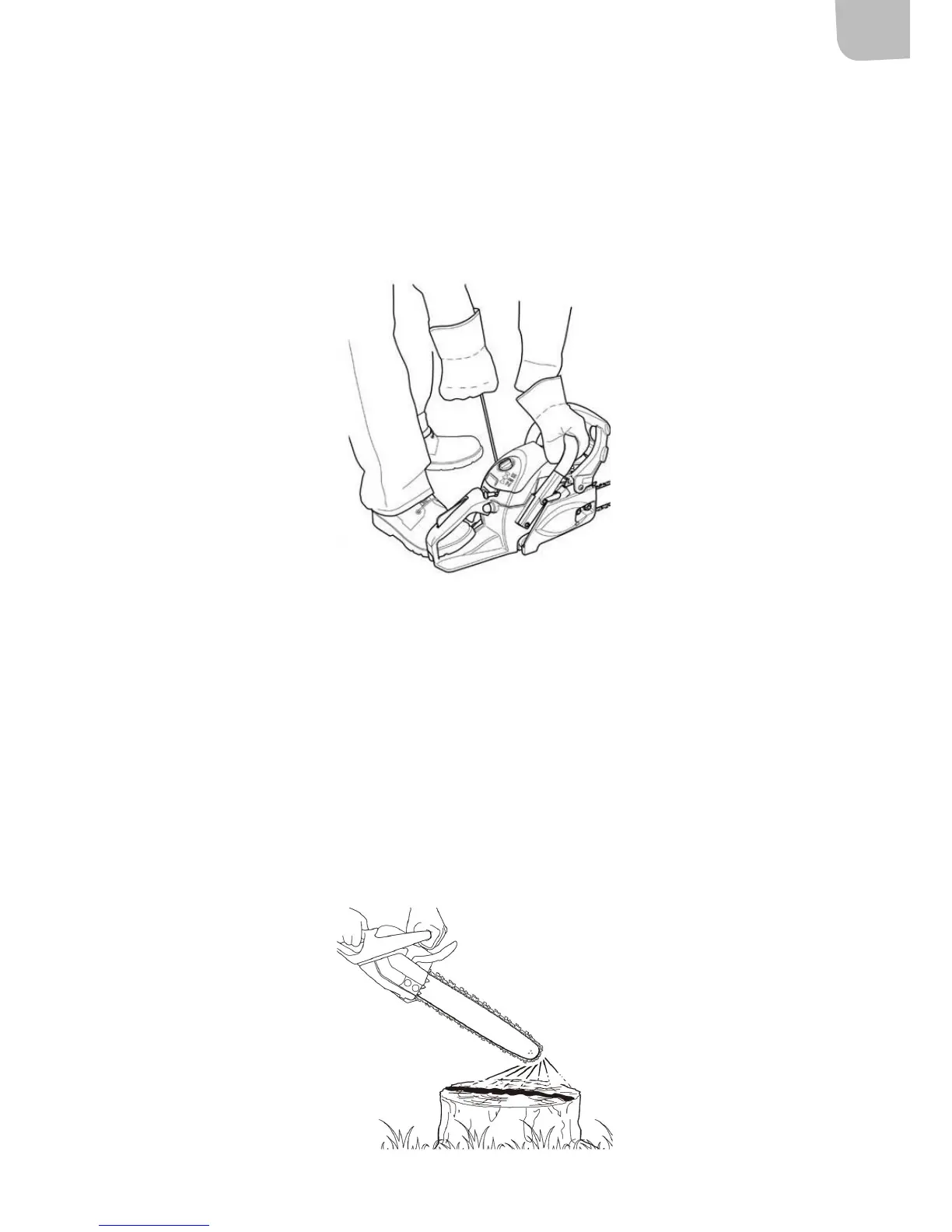 3. While holding the saw securely on the ground, pull the starter handle vigorously.