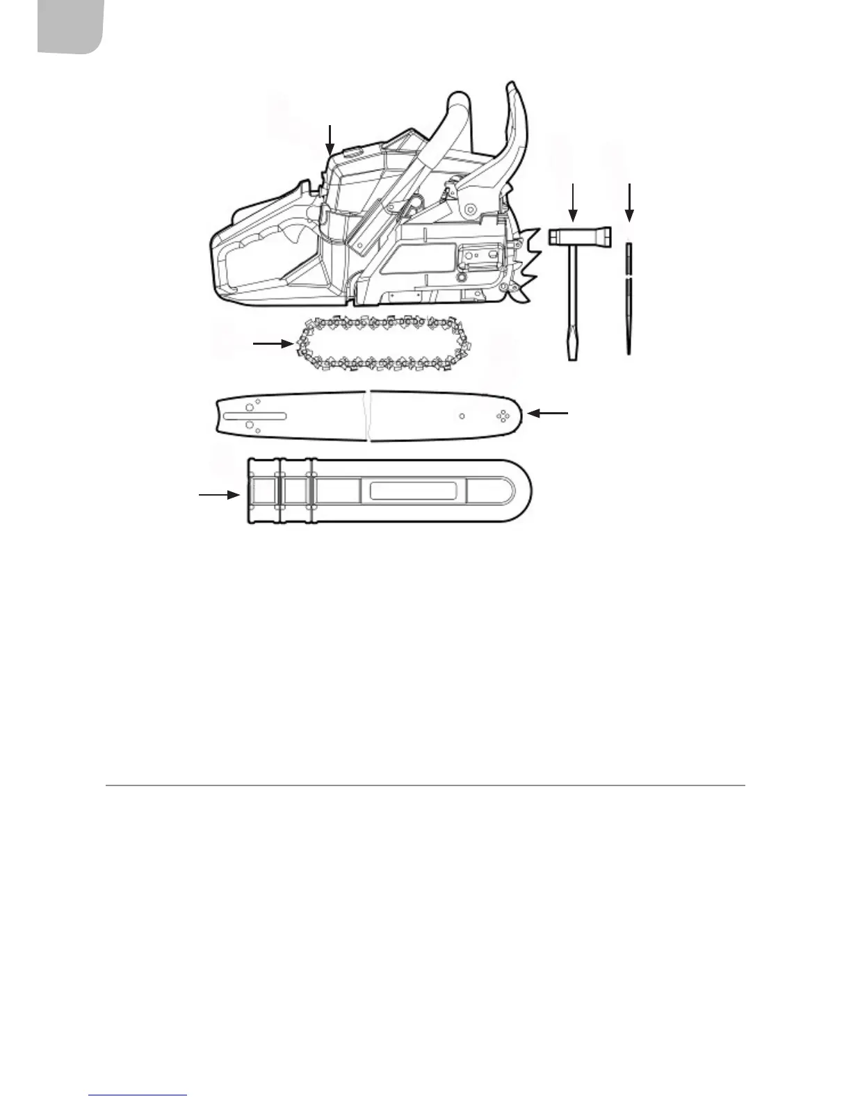 VARNING! Sågkedjan är mycket vass. Använd skyddshandskar.