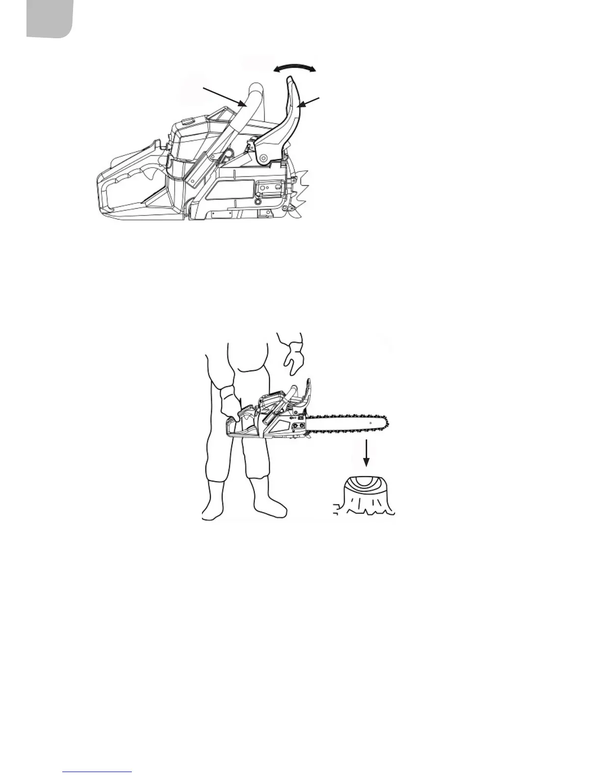 2. Håll sågen vågrätt, släpp det främre handtaget och låt sågsvärdets topp stöta emot en