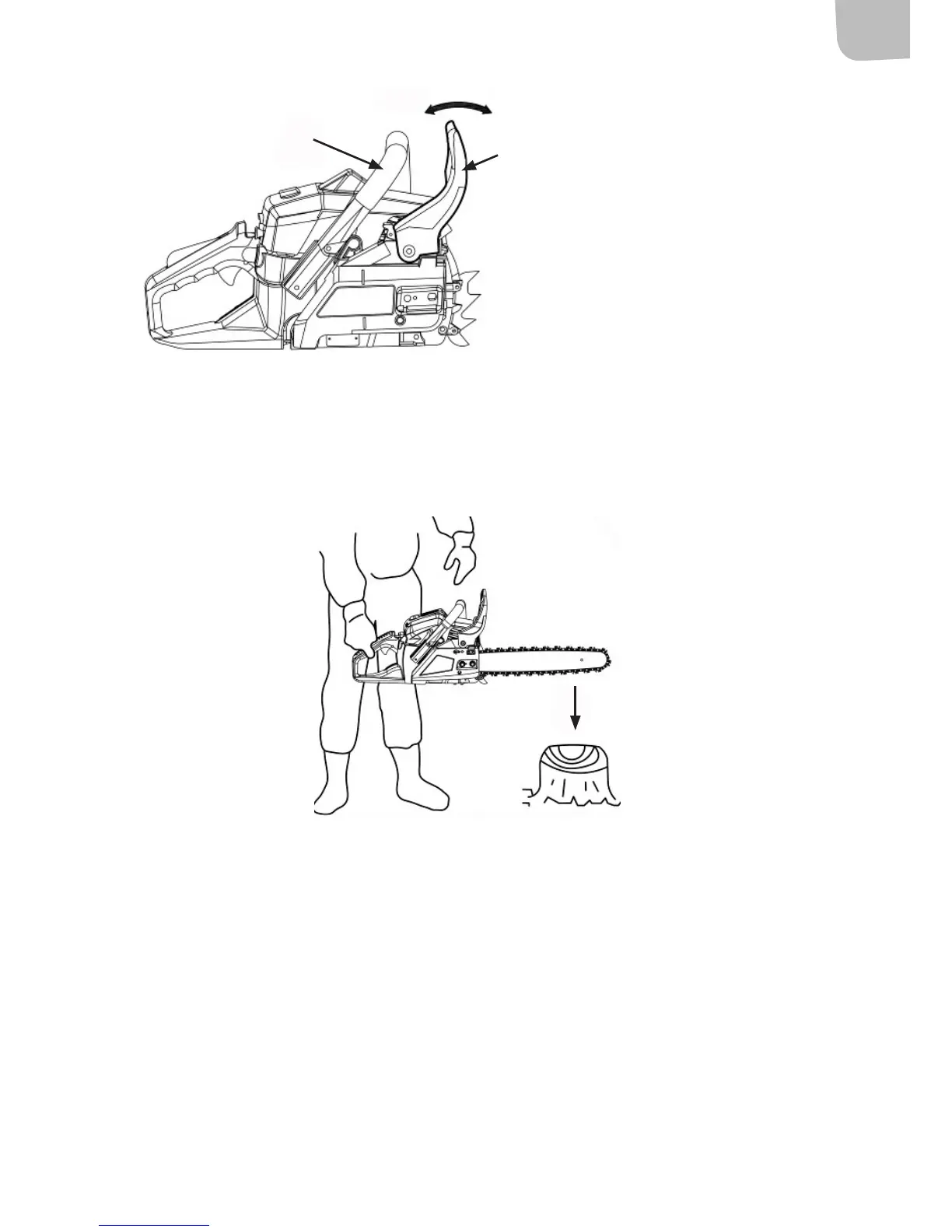 • Deaktiver bremsen ved å dra det fremre håndvernet / kjedebremsen mot det fremre håndtaket