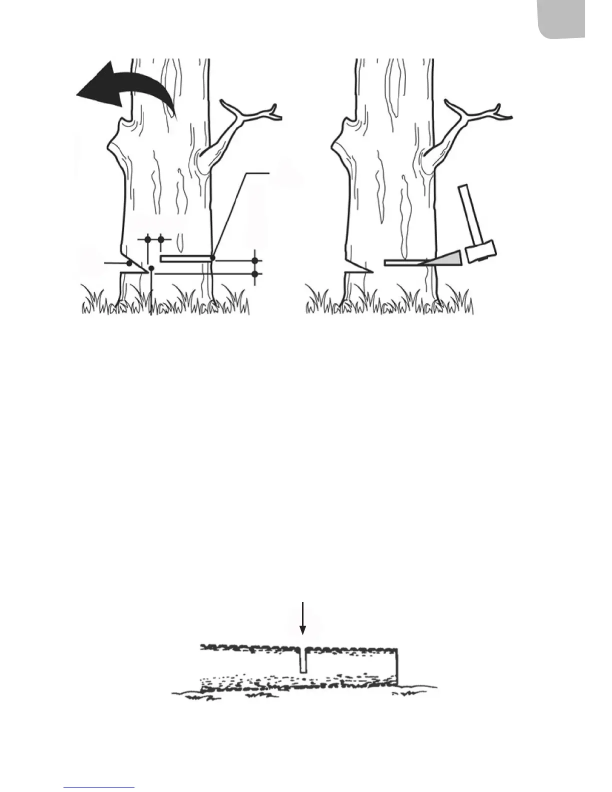 • Før arbeidet startes, sjekk kraften på bøyningen retning på den stakken som skal kuttes.