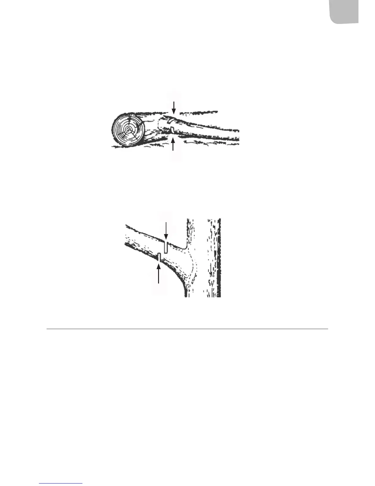 2. Sag så et lite snitt på den andre siden av greinen som er presset sammen – dette forhindrer