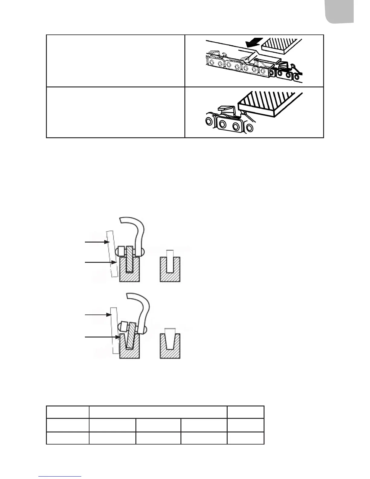 kun sverd og kjede fra tabellen under brukes. Dersom en kombinasjon som ikke er godkjent blir brukt,
