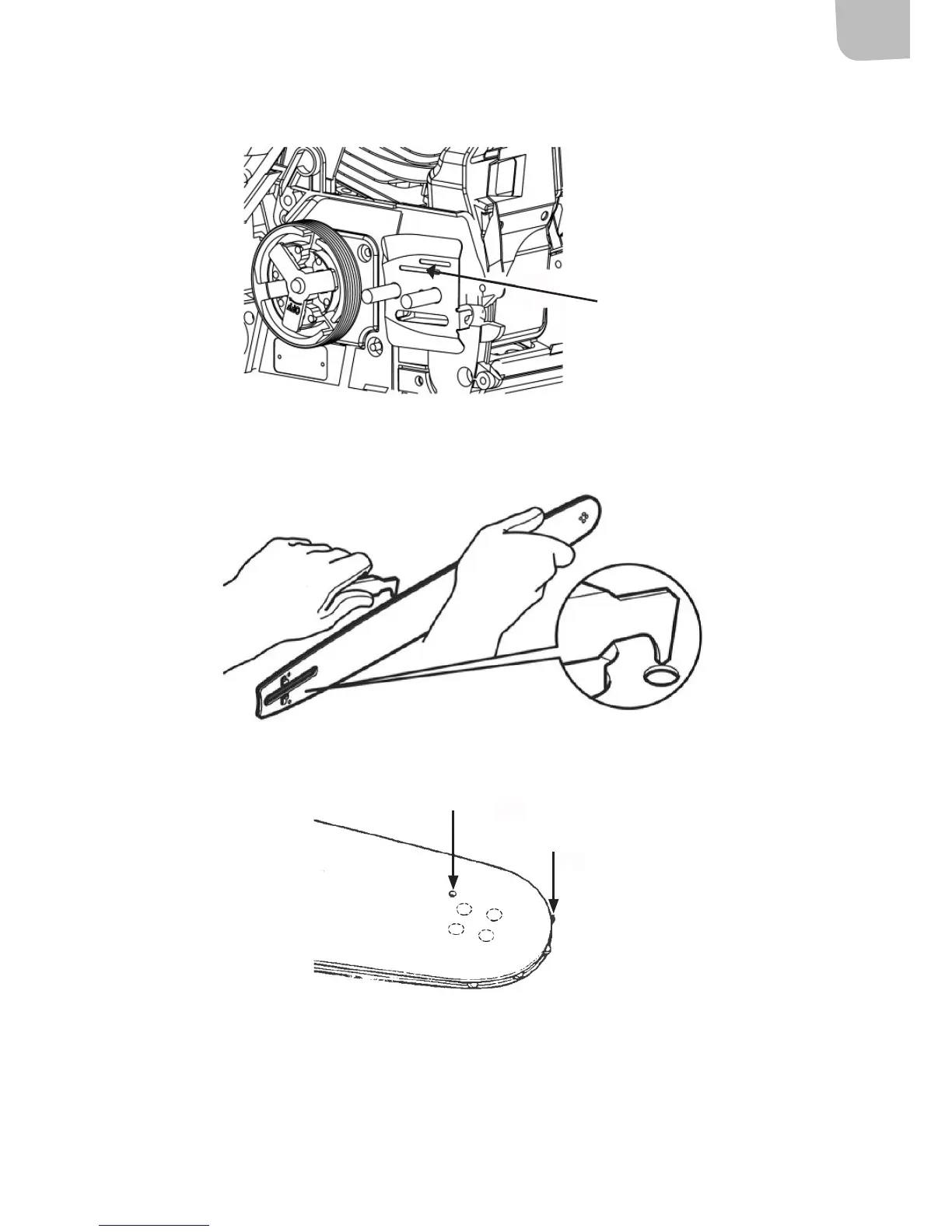 • Nasmaruj koło napędu przez otwór na olej łańcuchowy na górze prowadnicy.