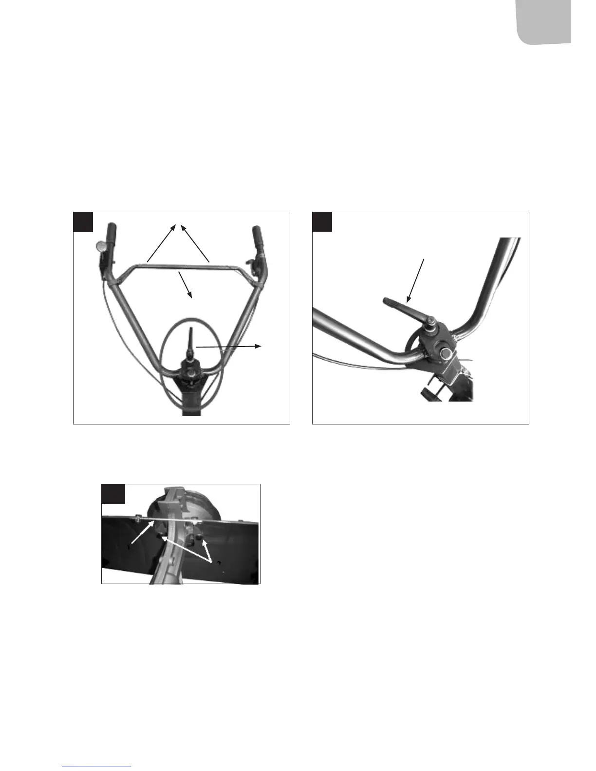 4. Lossa vajerfästet från det övre handtaget med en 4 mm insexnyckel (säljs separat). För in båda ändarna i tvärstycket (pos. 1, g. 1). Passa