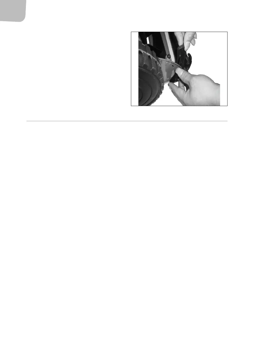 – Put the machine on its side and clean the blades. Compacted grass can be removed