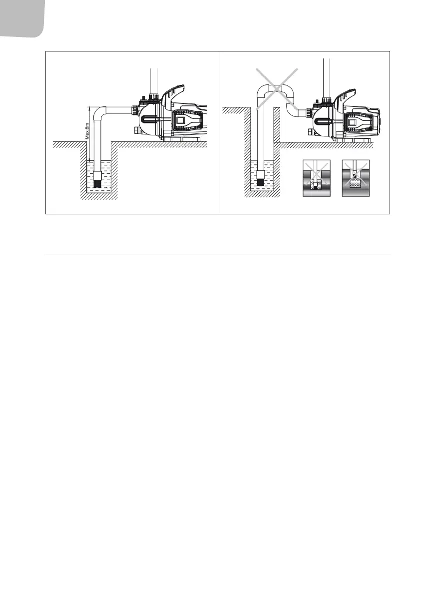 ADVARSEL! Ikke start pumpen før pumpekammeret er fylt med vann.